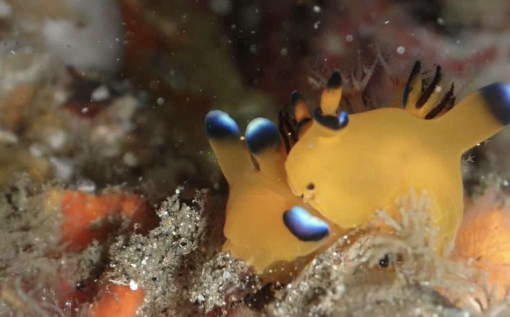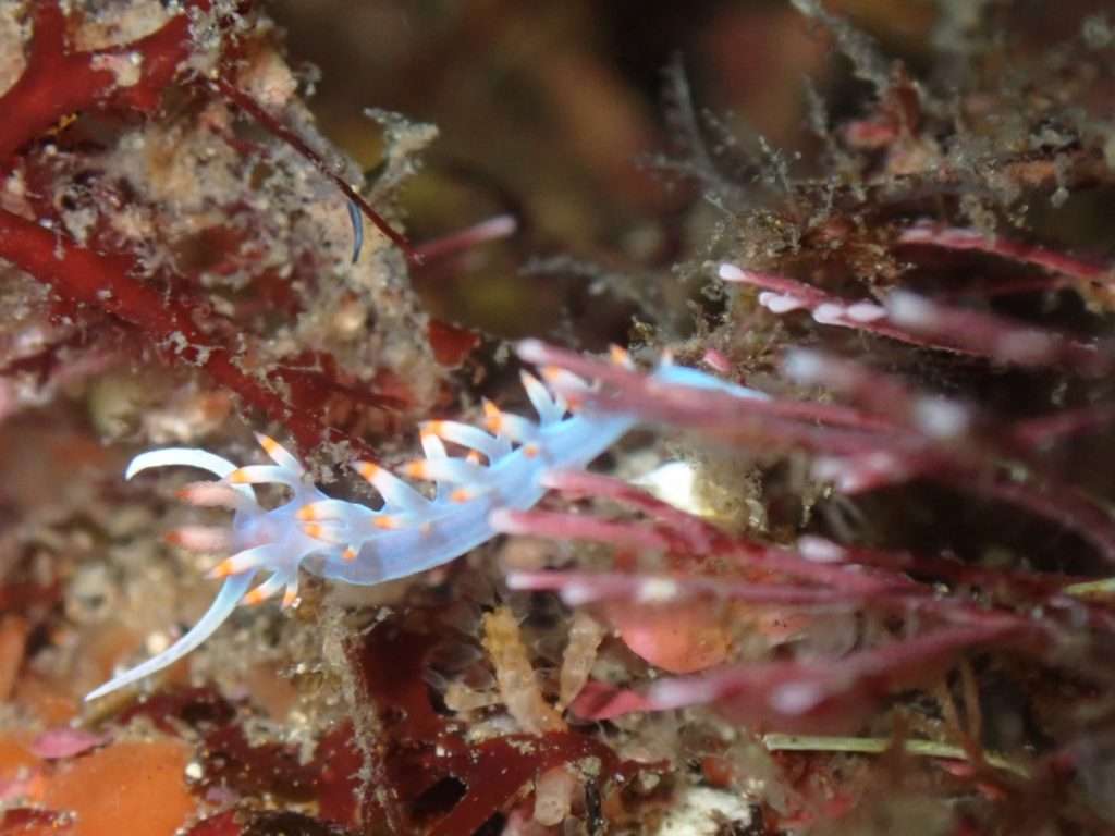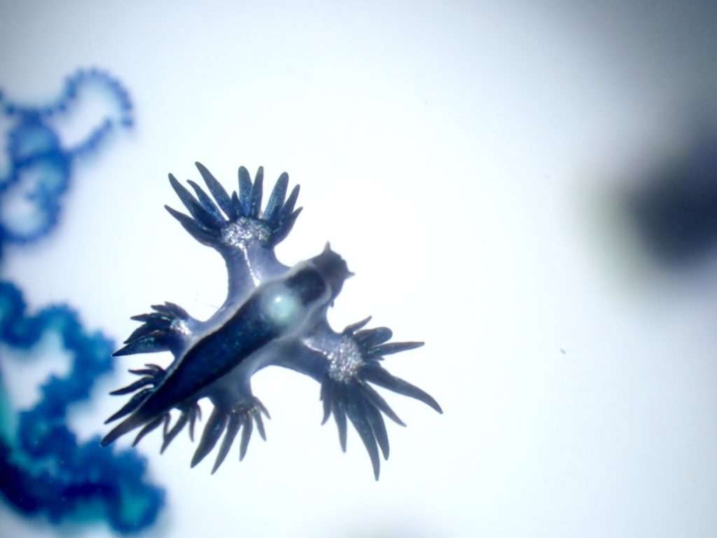 まずはカツオのエボシに付くアオミノウミウシ!