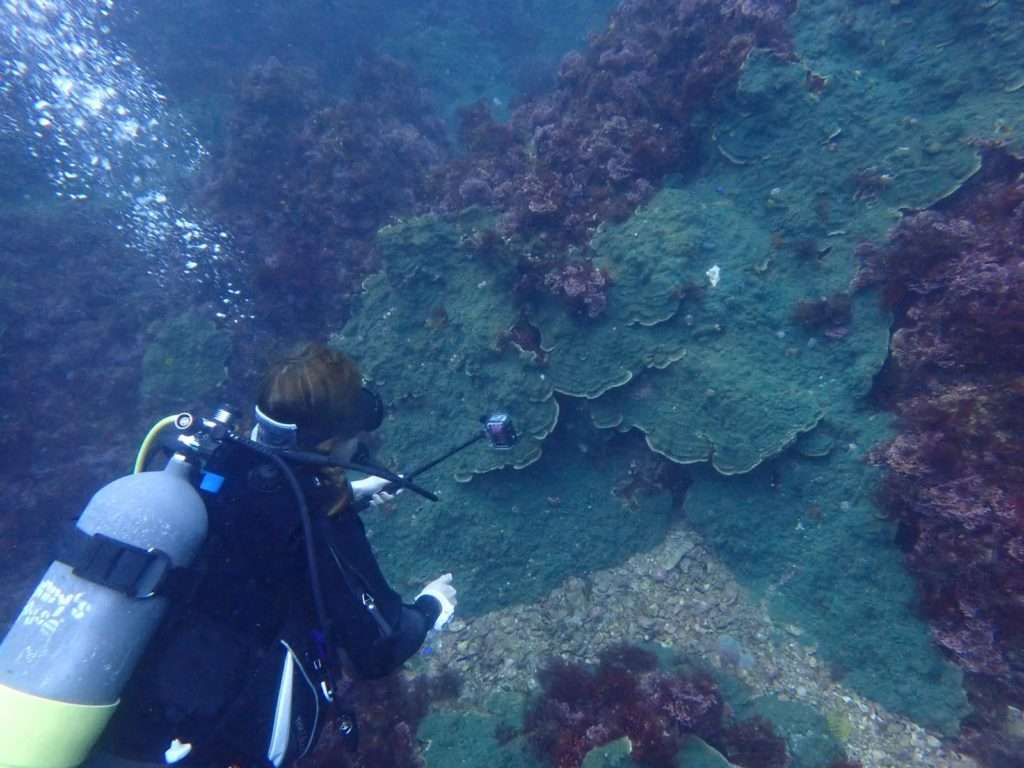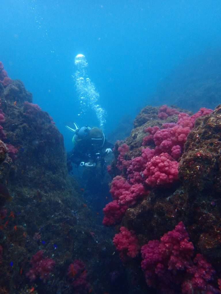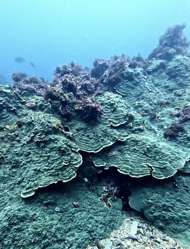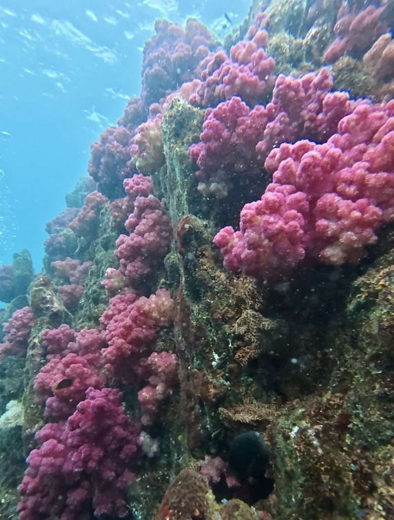 安全停止をしながらソフトコーラルが大好きなTさんにコモンサンゴやソフトコーラルの景色を楽しんで頂きました