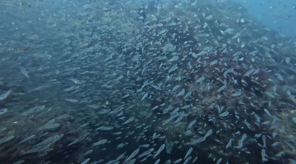 イシモチをかき分けて沖に出ると