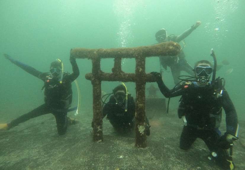 透明度はイマイチでしたが、魚が沢山いてとても楽しんでくれていました☺️ 水中に神社があるの⁉️
