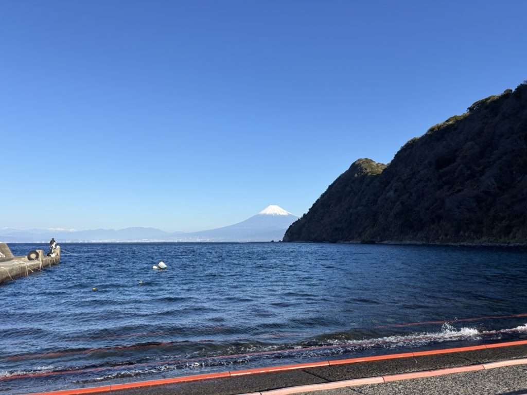 綺麗に見える富士をバックに今年のナイスバディ賞を受賞のお2人と井田の海へ
