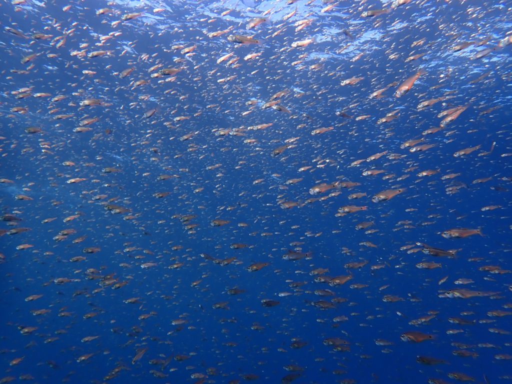 光が差し込む浅場で見る群れはそれだけで十分ですね〜