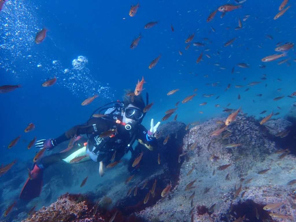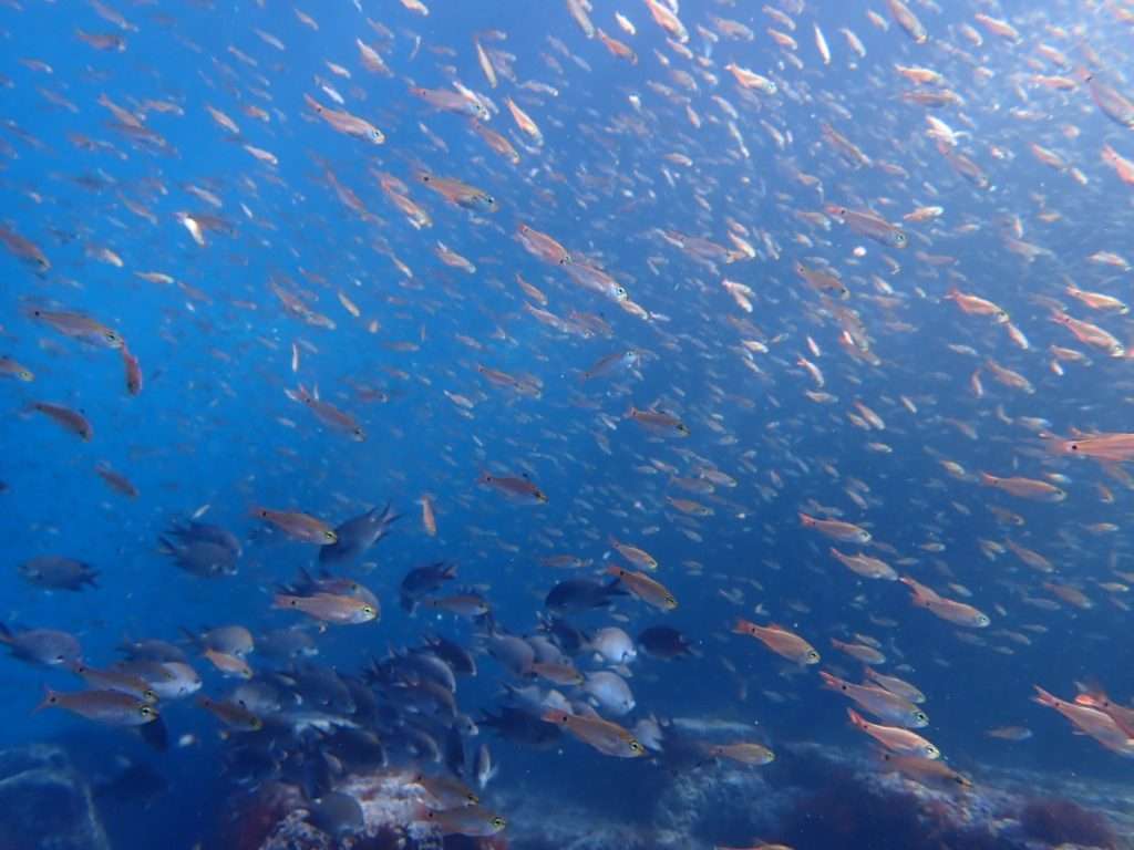 スズメダイやネンブツダイに囲まれると幸せな気持ちになります!