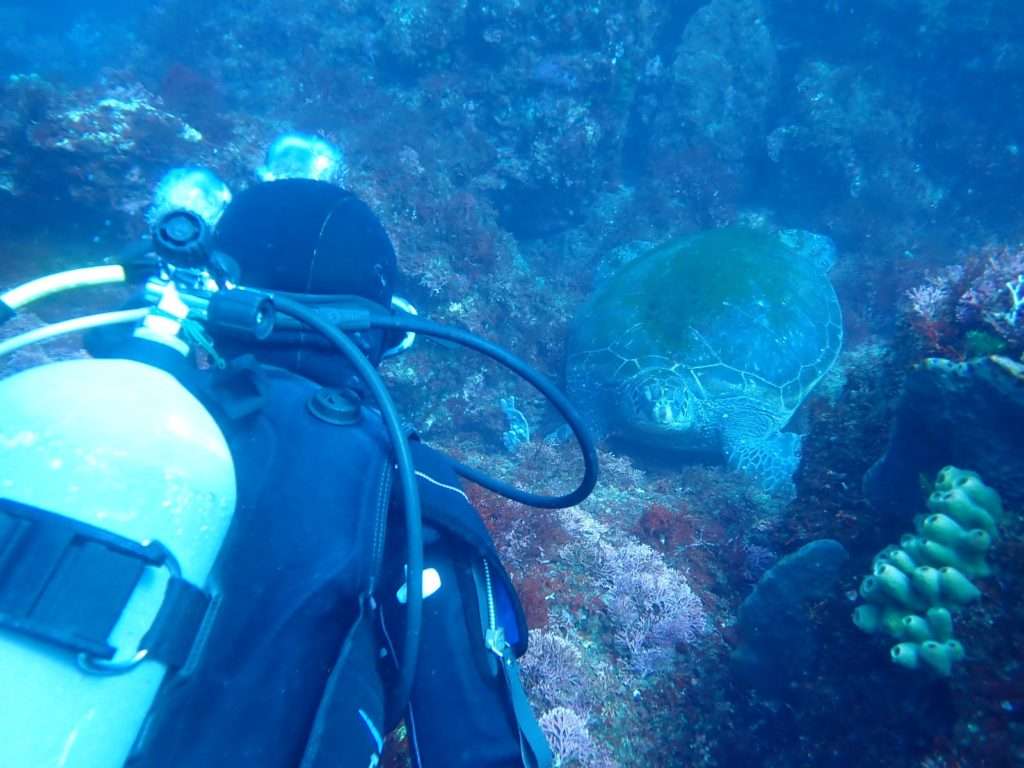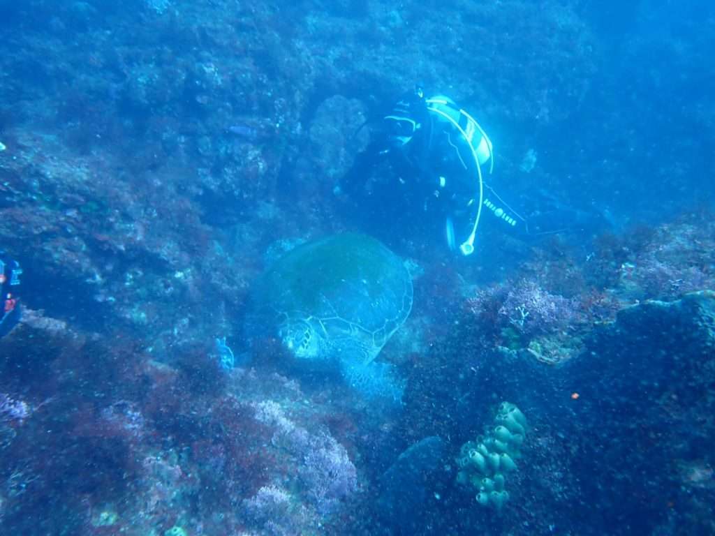 2匹の特大アオウミガメなどワイド派ダイバーも楽しめます