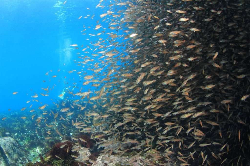下から湧き出る数百のボラクーダは見事でした👏